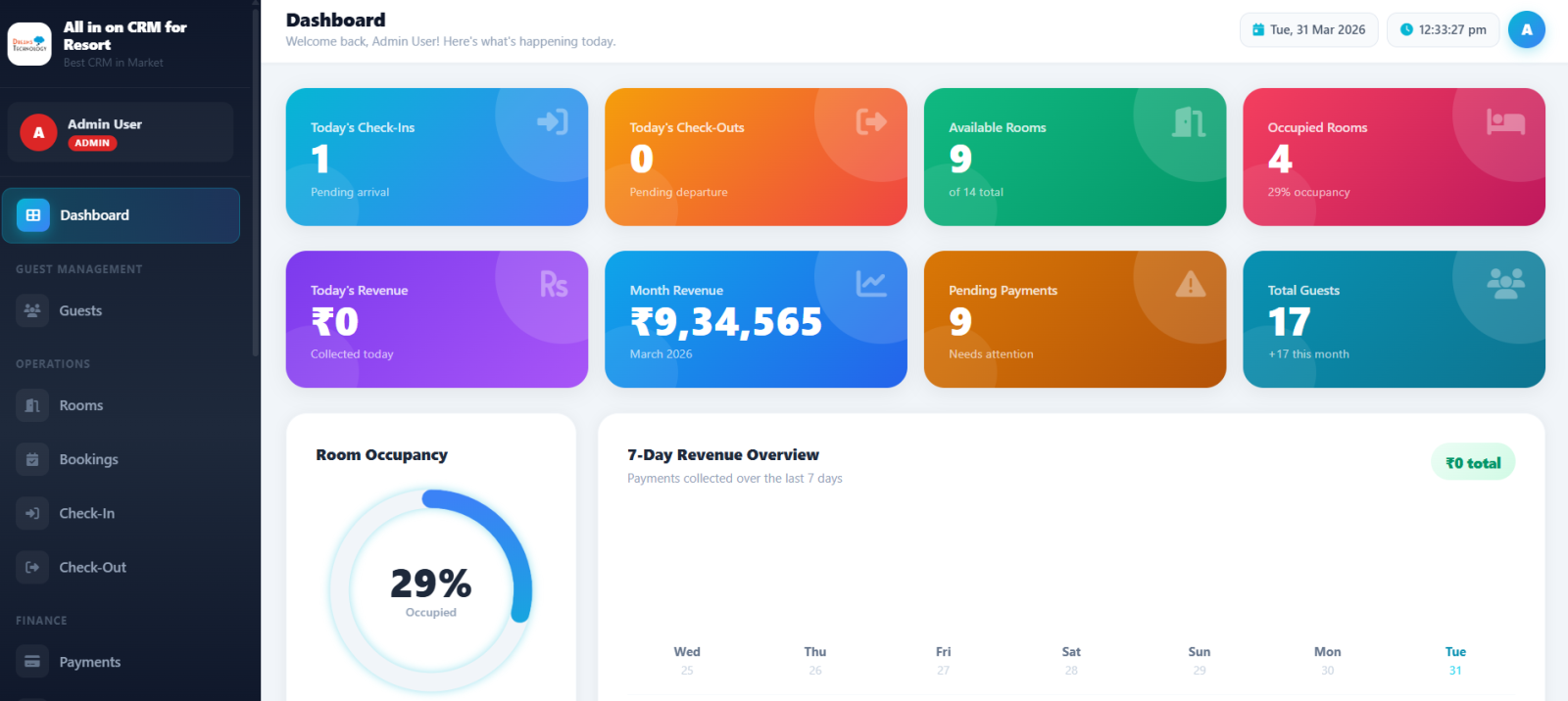 Introducing a next-generation Hotel & Resort CRM built on Laravel 12, designed to streamline operations, enhance guest experience, and maximize revenue.
